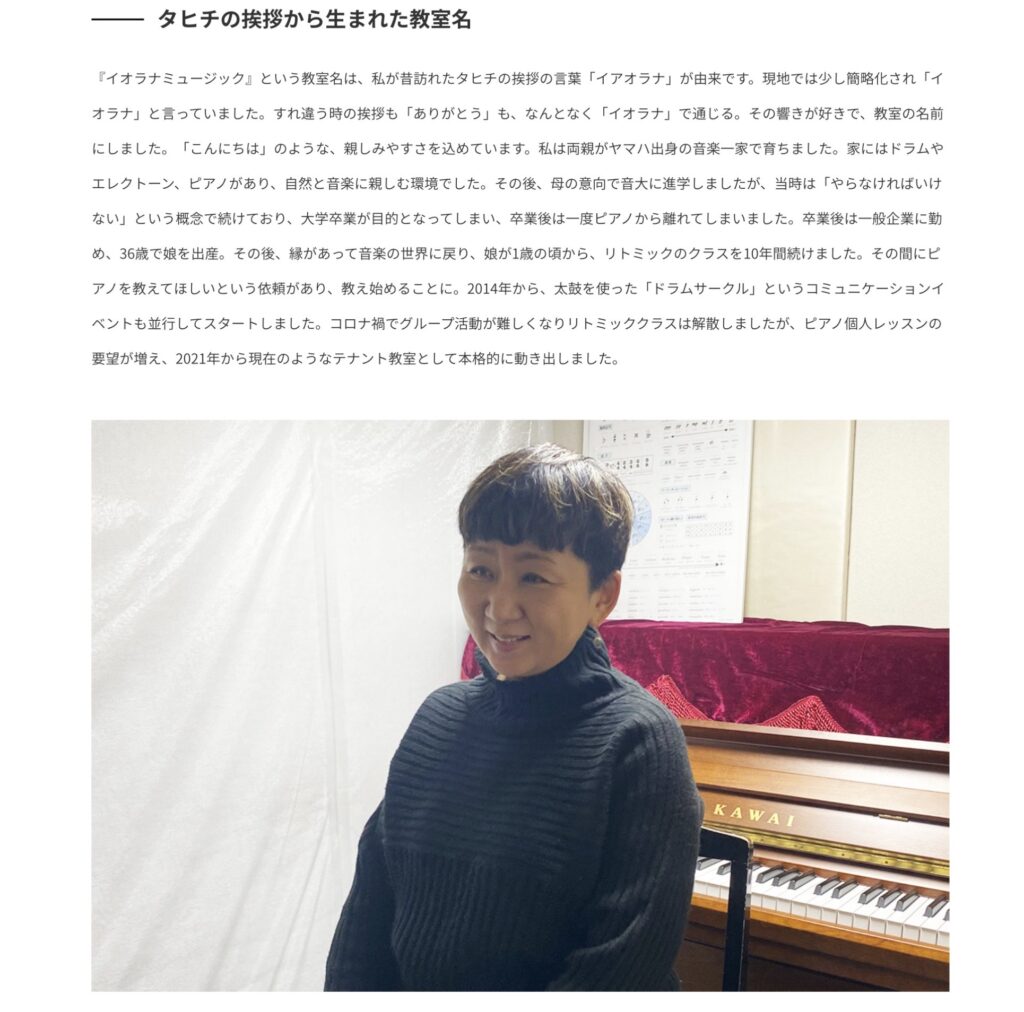 ▶川野めぐみ代表(イオラナミュージック(Iorana Music) 高津区二子新地ピアノ教室)のインタビュー