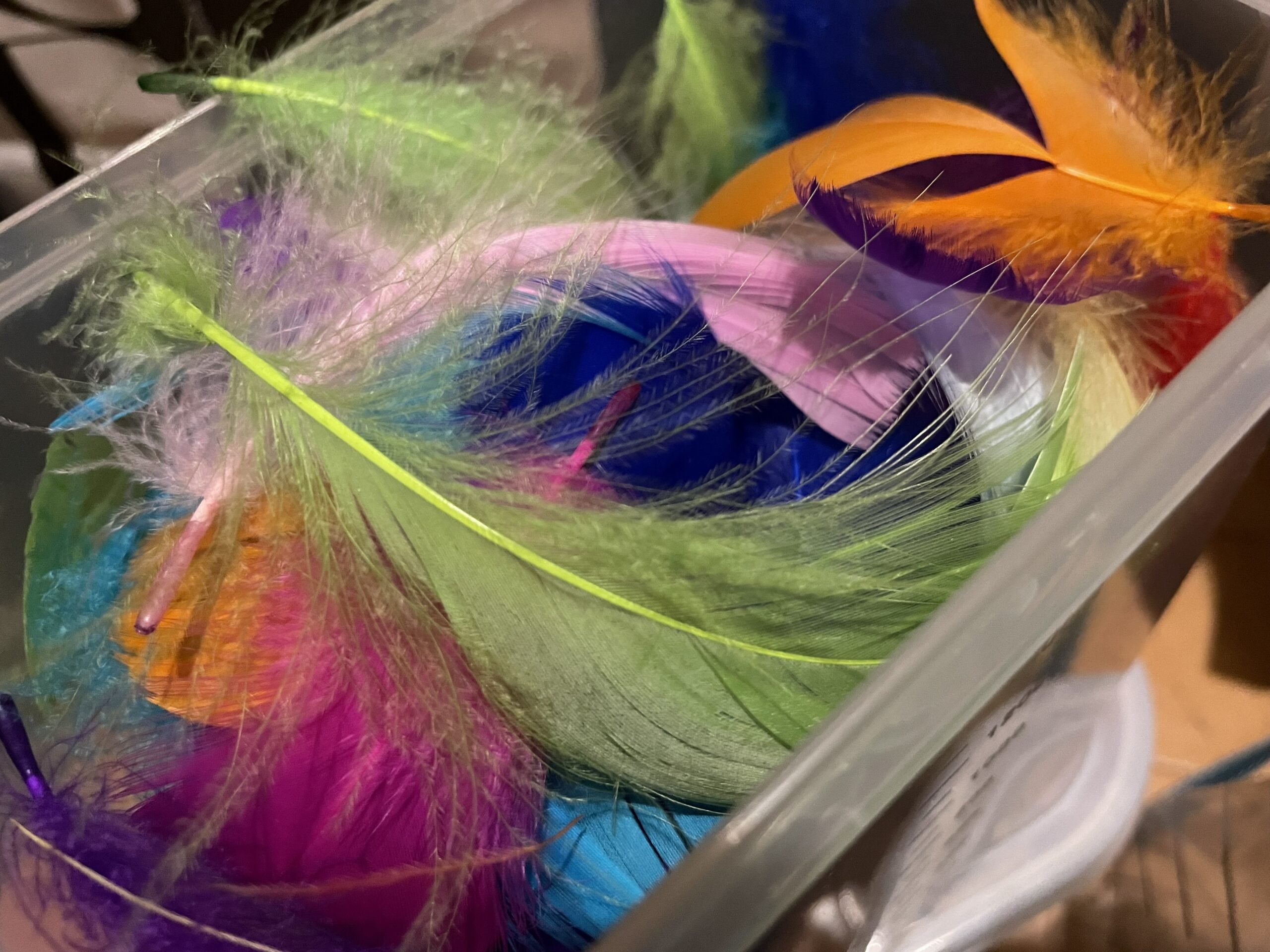 スライドホイッスルの棒の部分に、鳥の羽、マスキングテープ、シールなどでレコレーションできます。